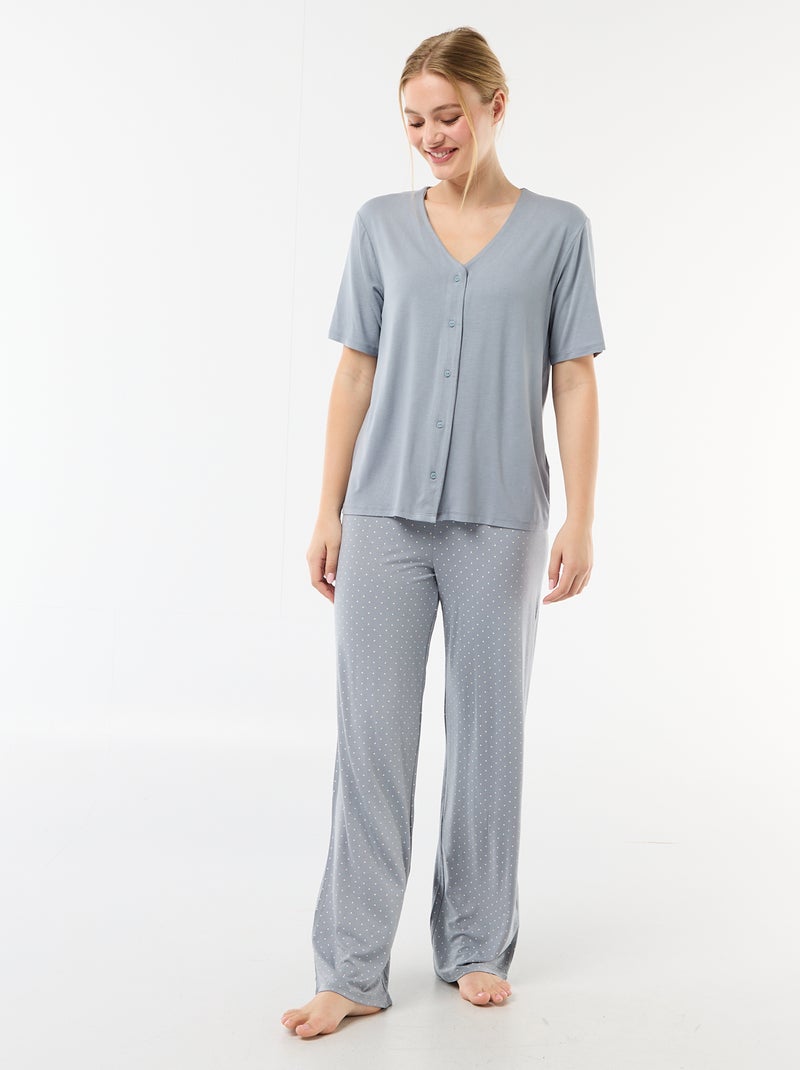 Pyjama long imprimé pois - 2 pièces - Bleu