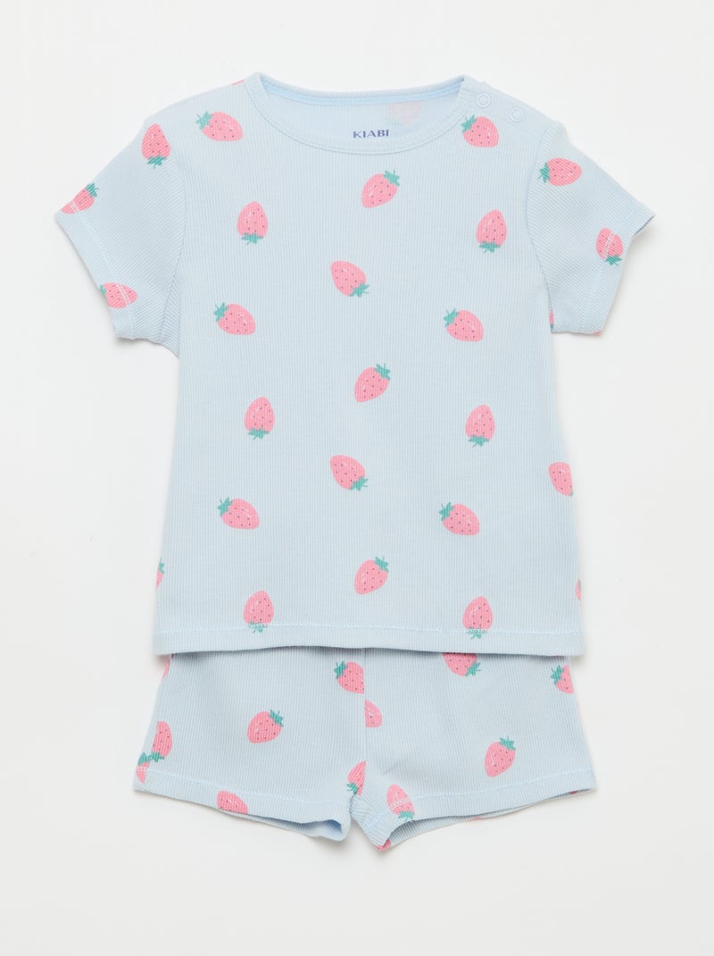 Pyjama t-shirt + short en coton côtelé - 2 pièces - Bleu