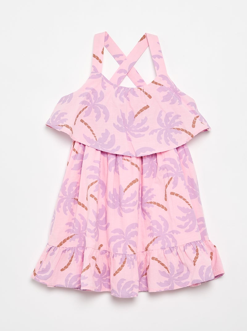 Robe à bretelles croisées + volants forme housse - Rose