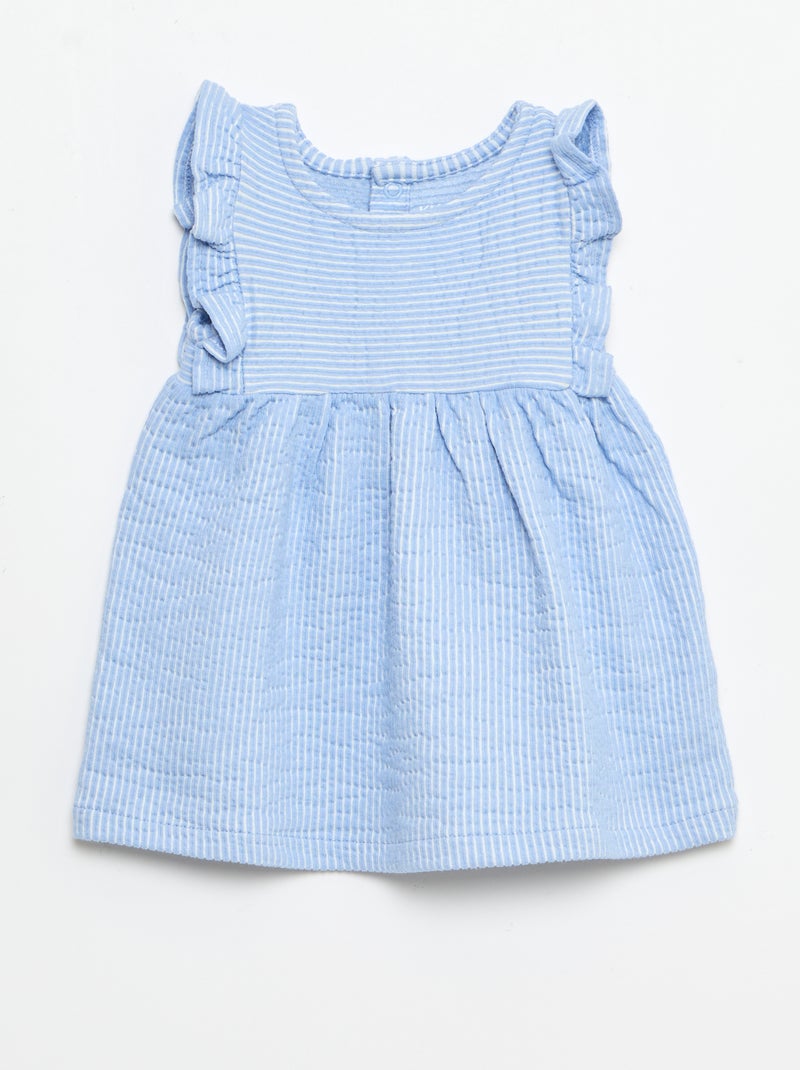 Robe à manches courtes en maille côtelée - Bleu