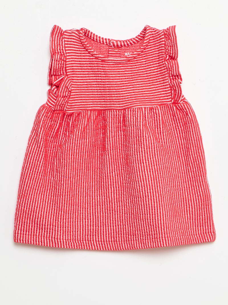 Robe à manches courtes en maille côtelée - Rouge
