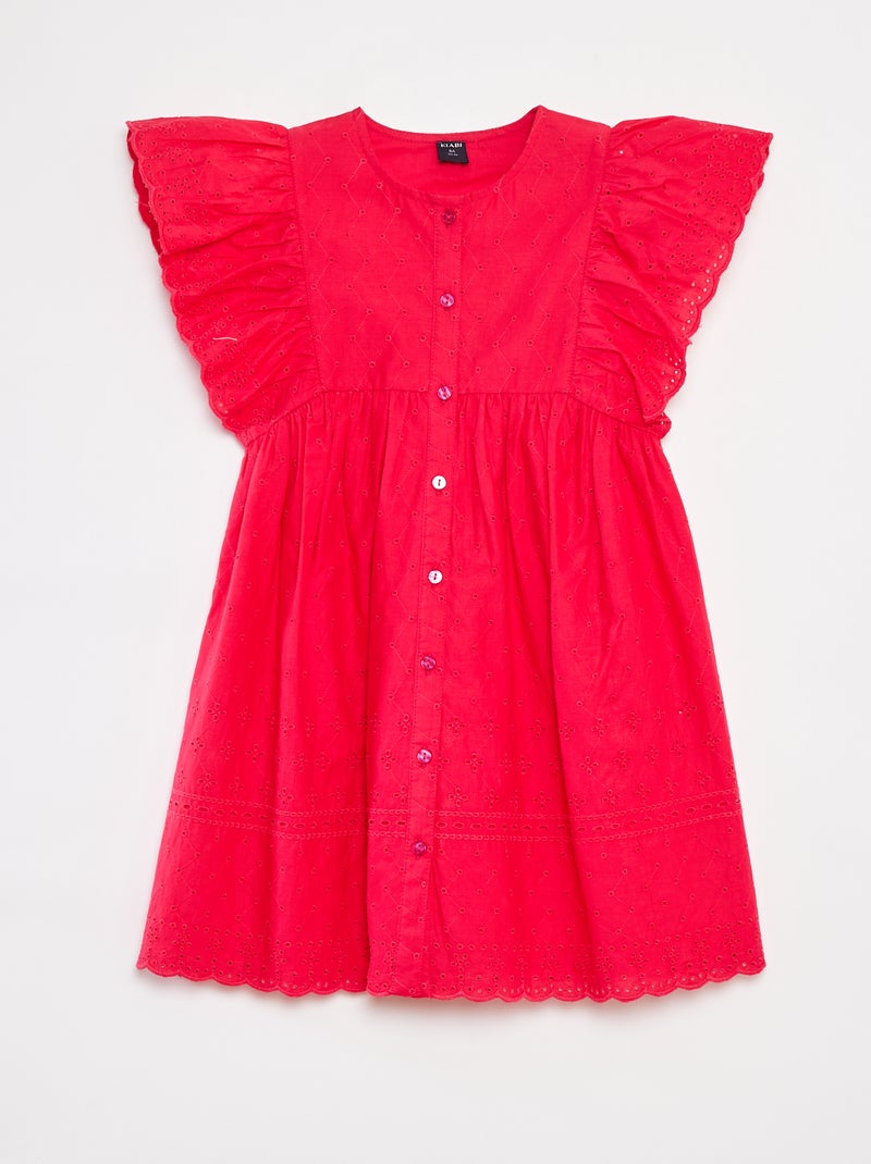 Robe avec broderies all over et volants aux emmanchures - ROSE