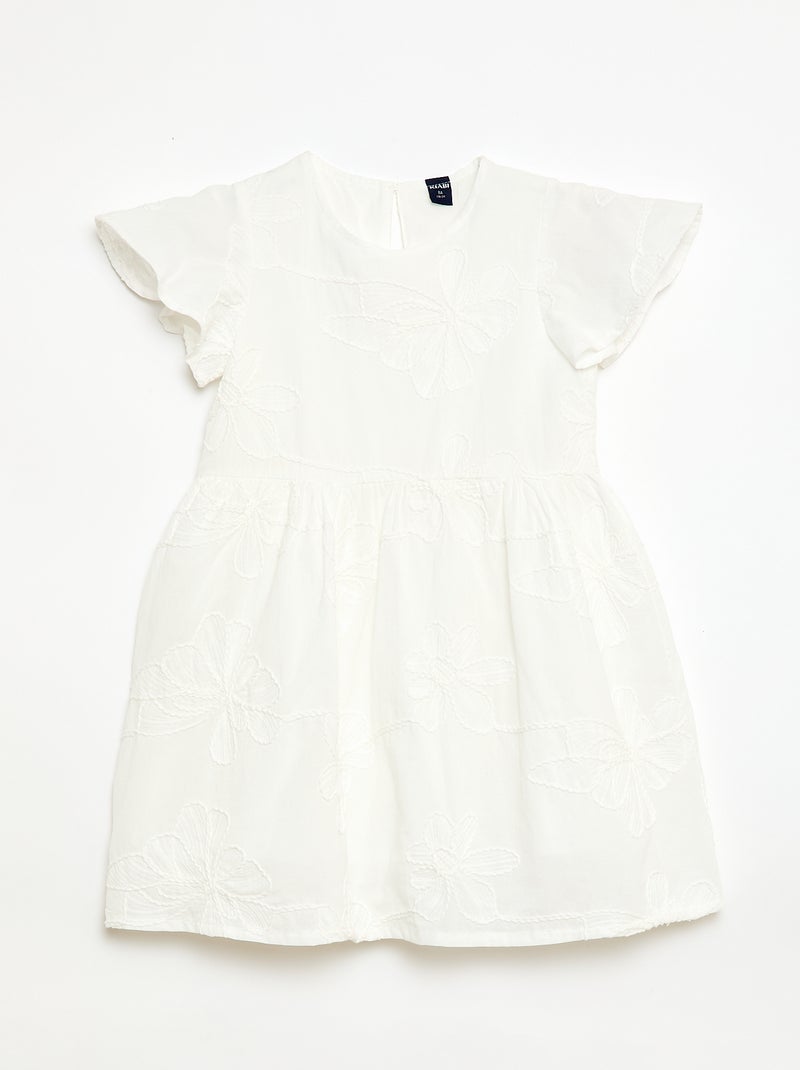 Robe avec broderies fleurs fantaisies - Blanc