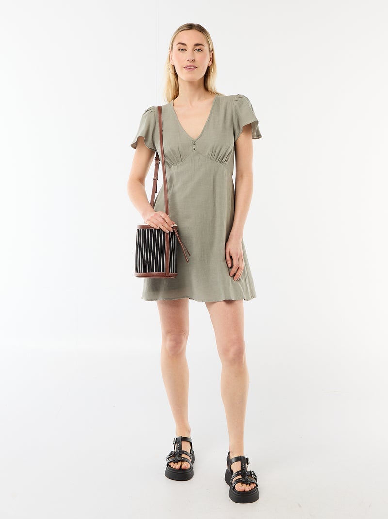 Robe courte manches papillons en coton et lin - Vert
