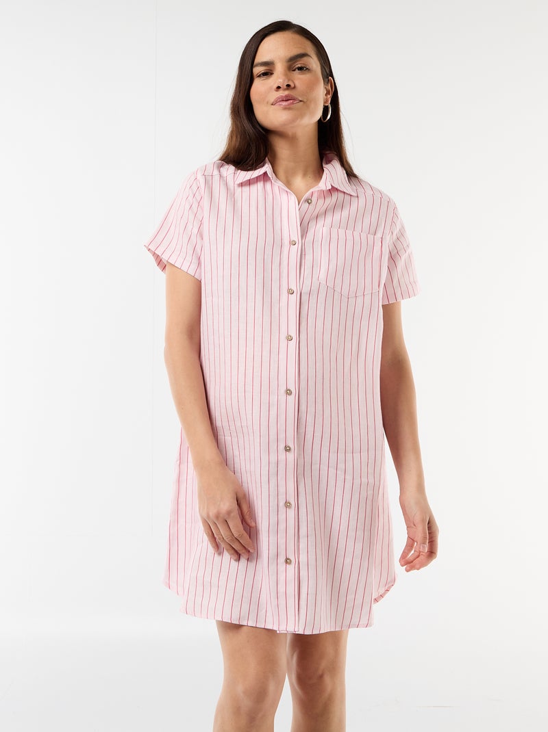 Robe de maternité rayée en lin - Rose