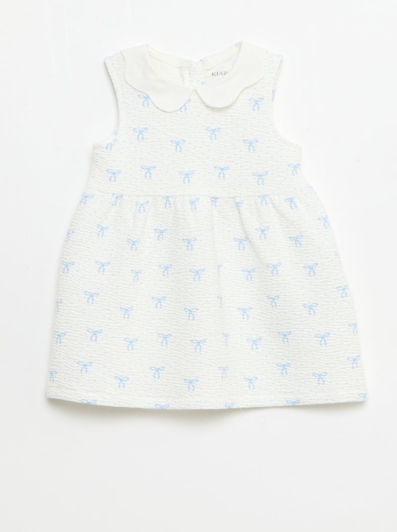 Robe en maille froissée avec col en popeline - Blanc
