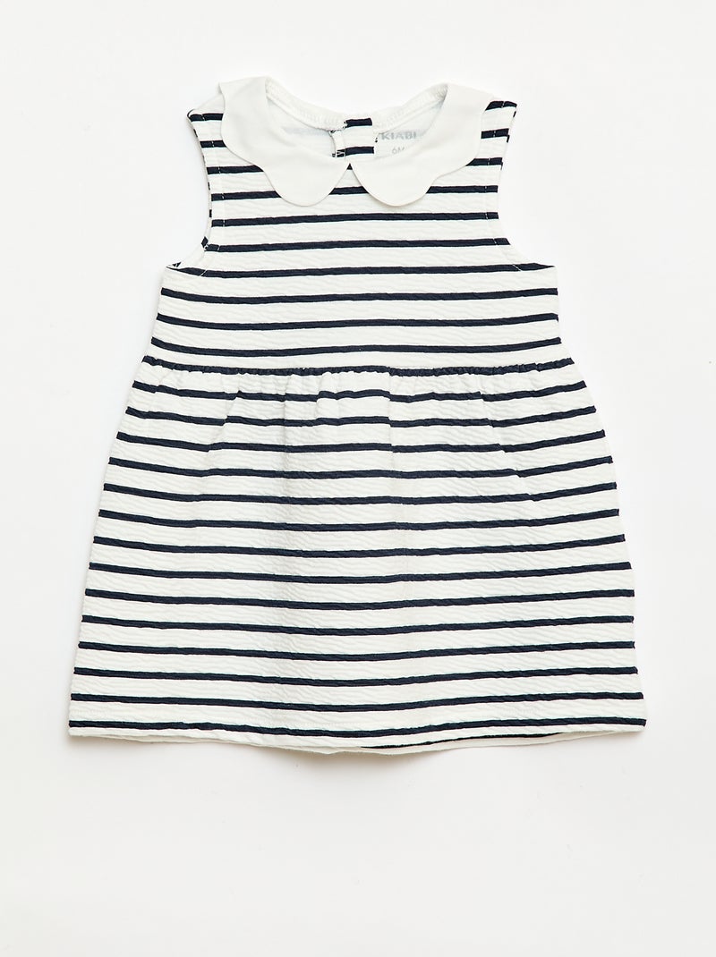 Robe en maille froissée avec col en popeline - Blanc