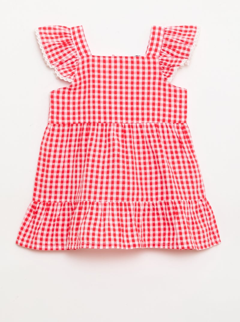 Robe imprimé vichy à étages - Rouge