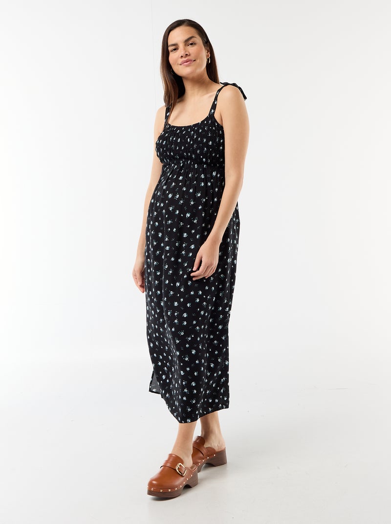 Un vent de liberté souffle à l'approche d'enfiler cette robe longue de maternité et son effet smocké.