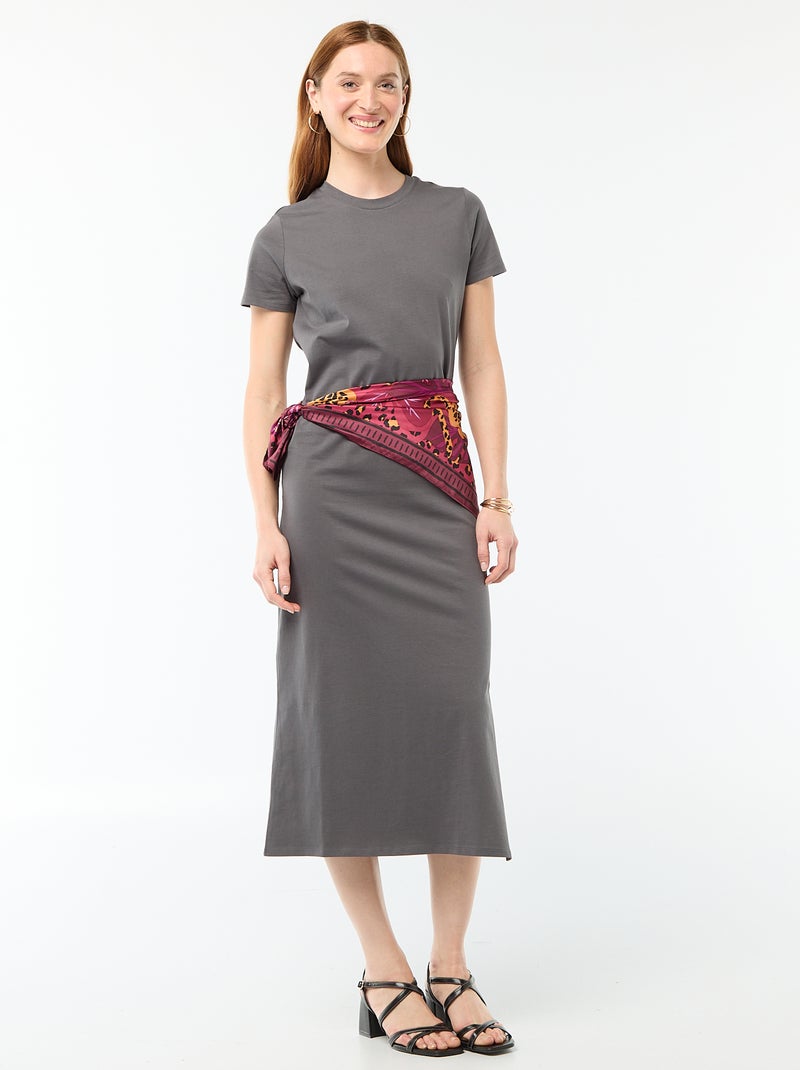 Robe longue en jersey manches courtes - Gris