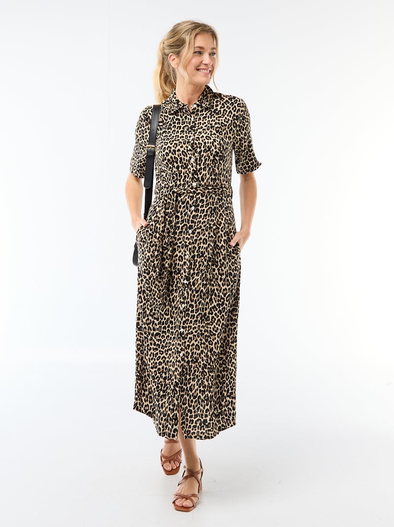 Robe longue forme chemise avec ceinture à nouer all-over - Beige