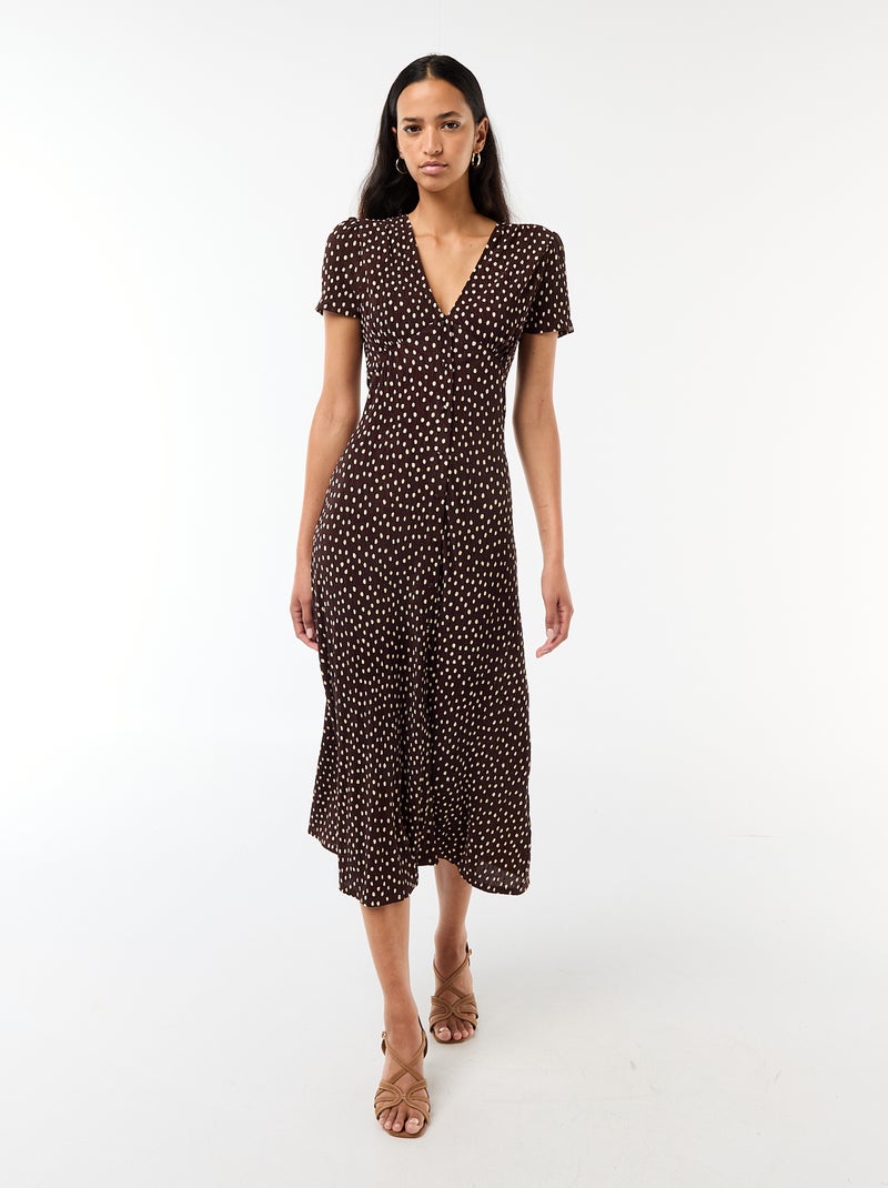 Robe longue imprimée all-over fine - Marron