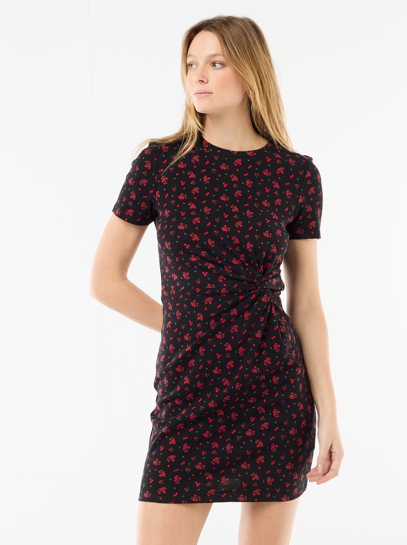 Robe t-shirt courte avec nœud fantaisie - Noir