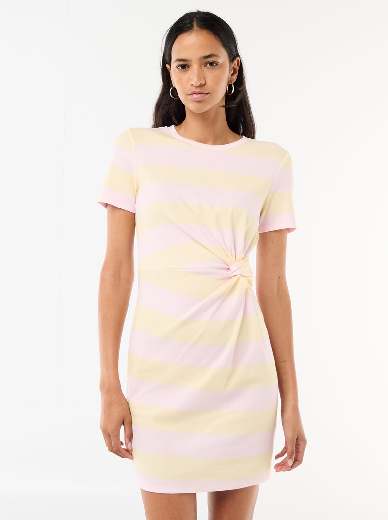 Robe t-shirt courte avec nœud fantaisie - Rose