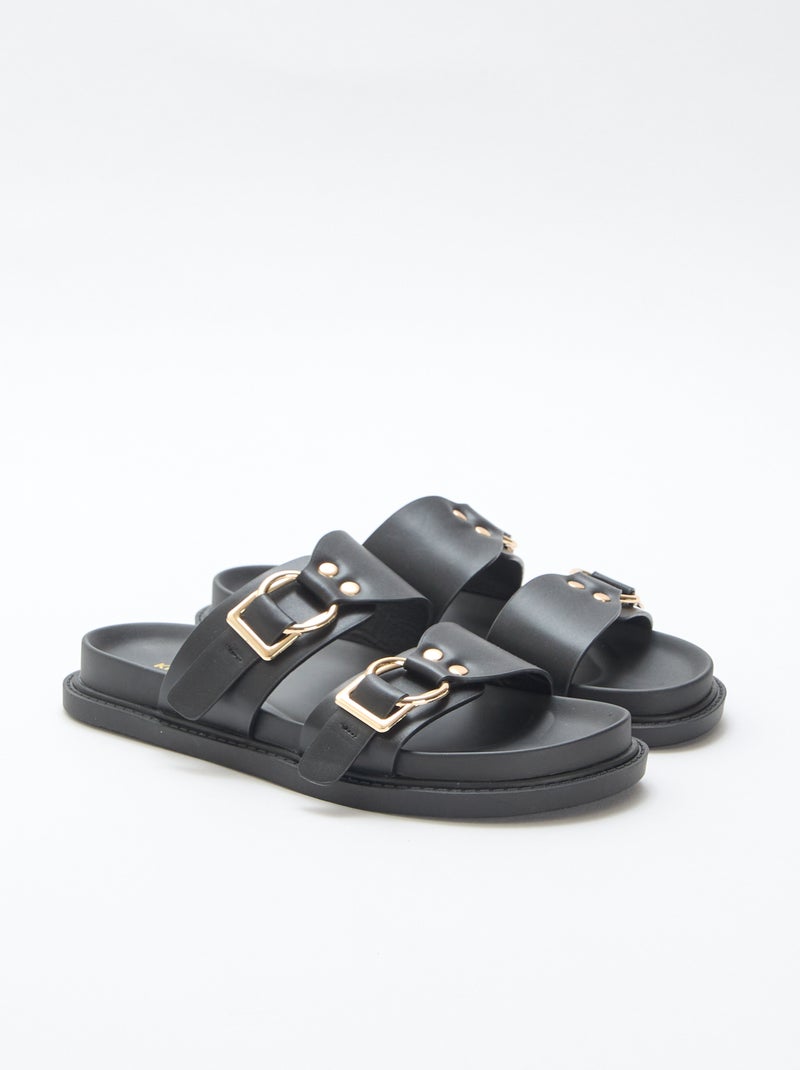 Sandale plate double brides - Noir