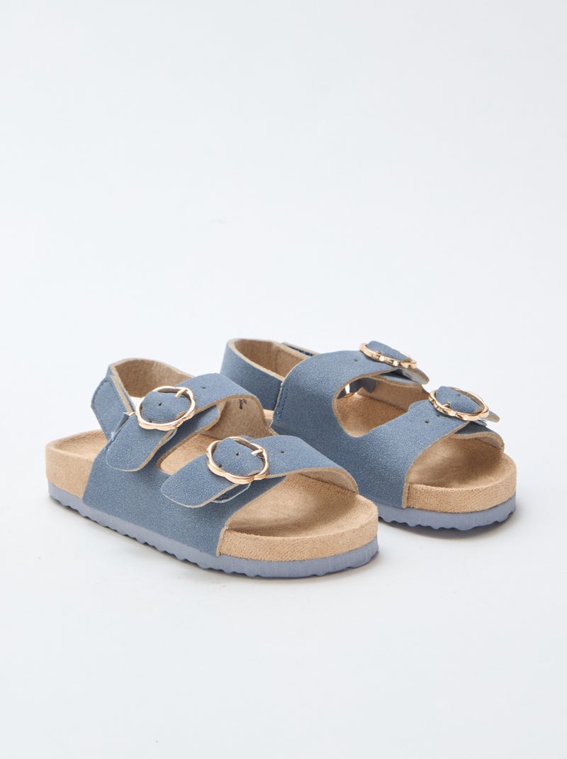 Sandales plates avec bride de maintien à la cheville ajustable par un scratch - Bleu