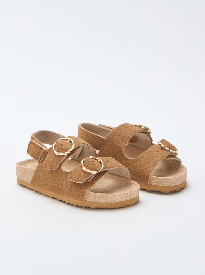 Sandales plates avec bride de maintien à la cheville ajustable par un scratch - Marron