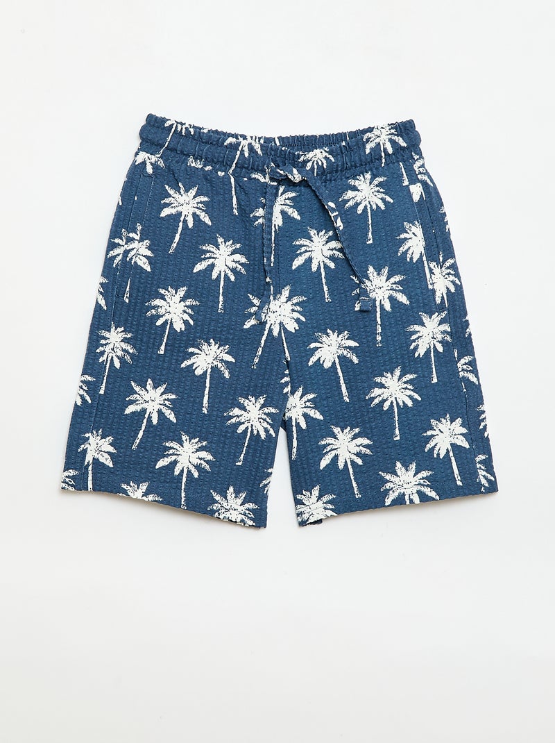 Short à taille élastiquée en coton - Bleu