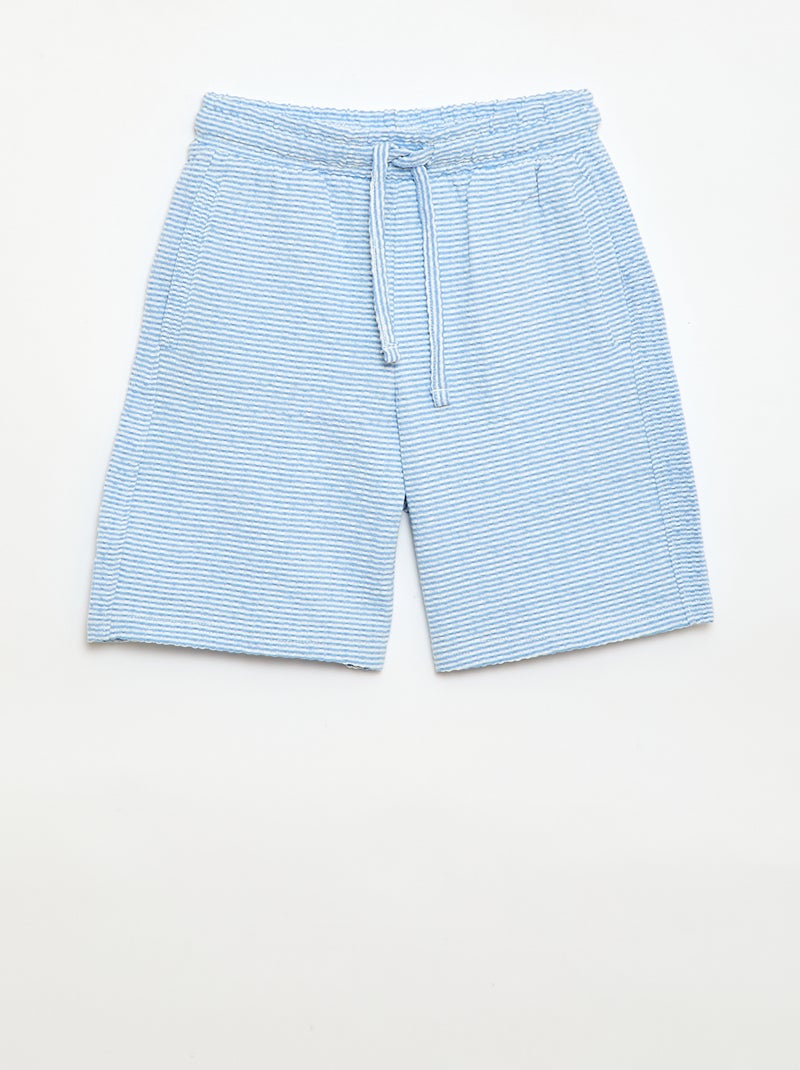 Short à taille élastiquée en coton - Bleu