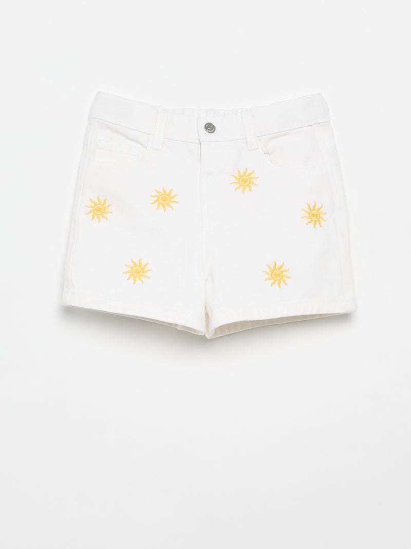 Short brodé en denim - Blanc