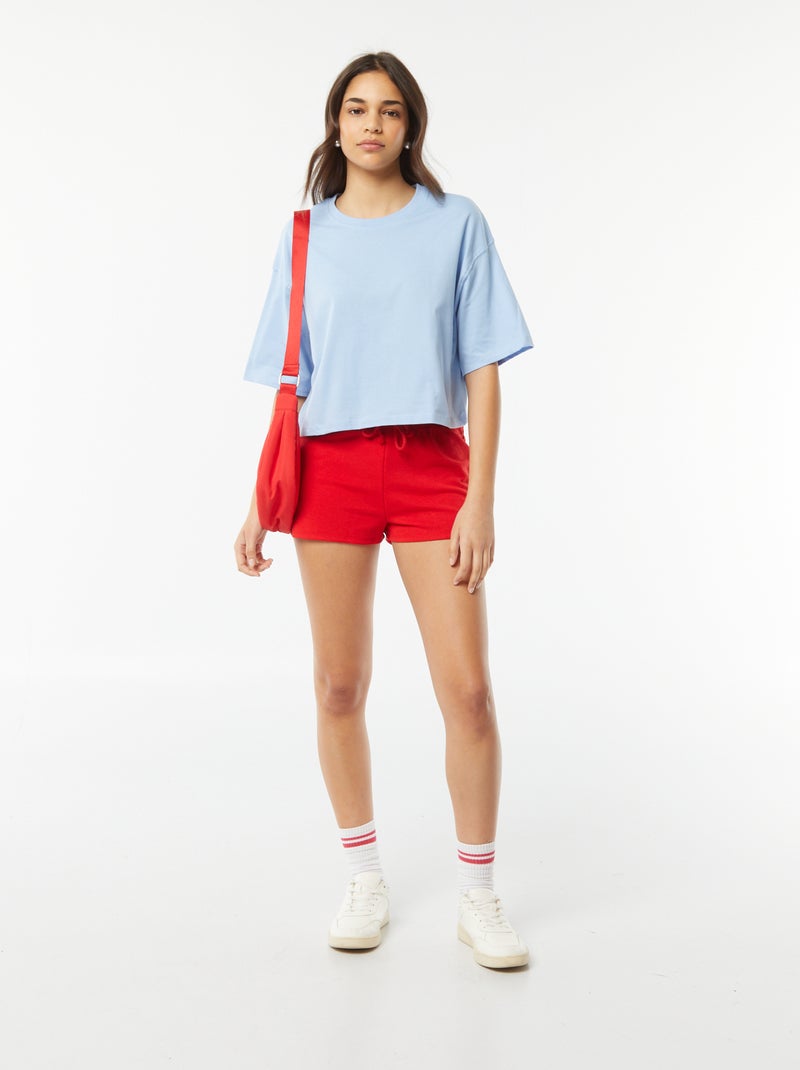 Short court en molleton léger uni - Rouge