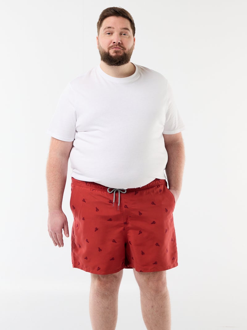 Short de bain à motif - Rouge