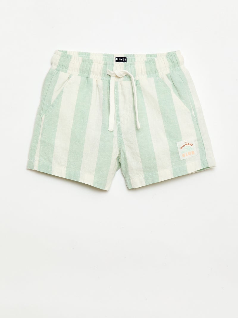 Short en coton et lin - Vert