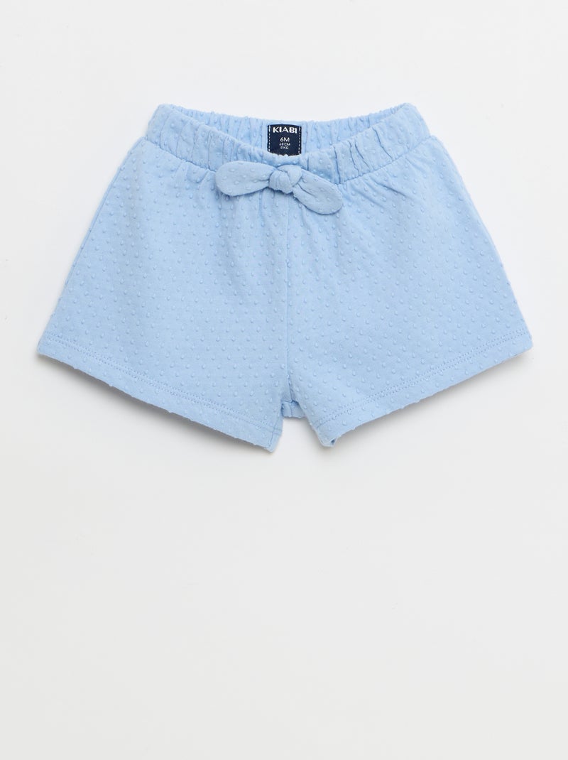 Short en maille jacquard uni avec nœud fantaisie - Bleu