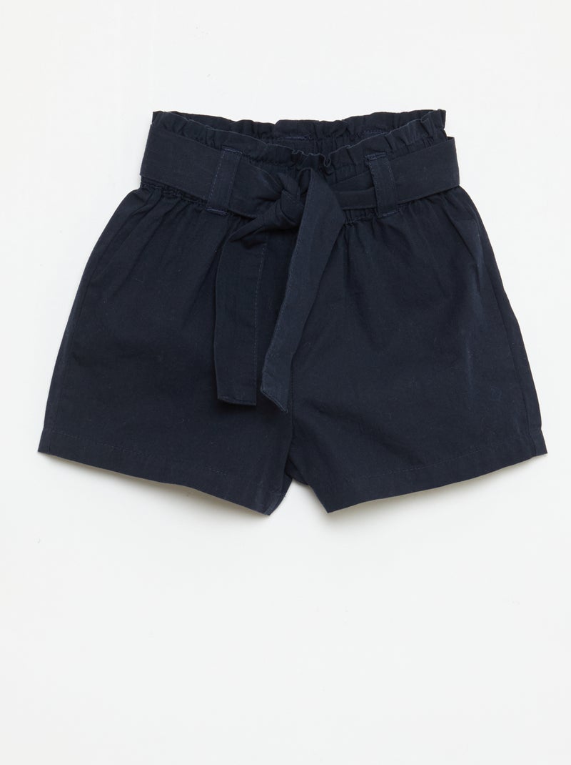Short en popeline avec ceinture à nouer - Bleu