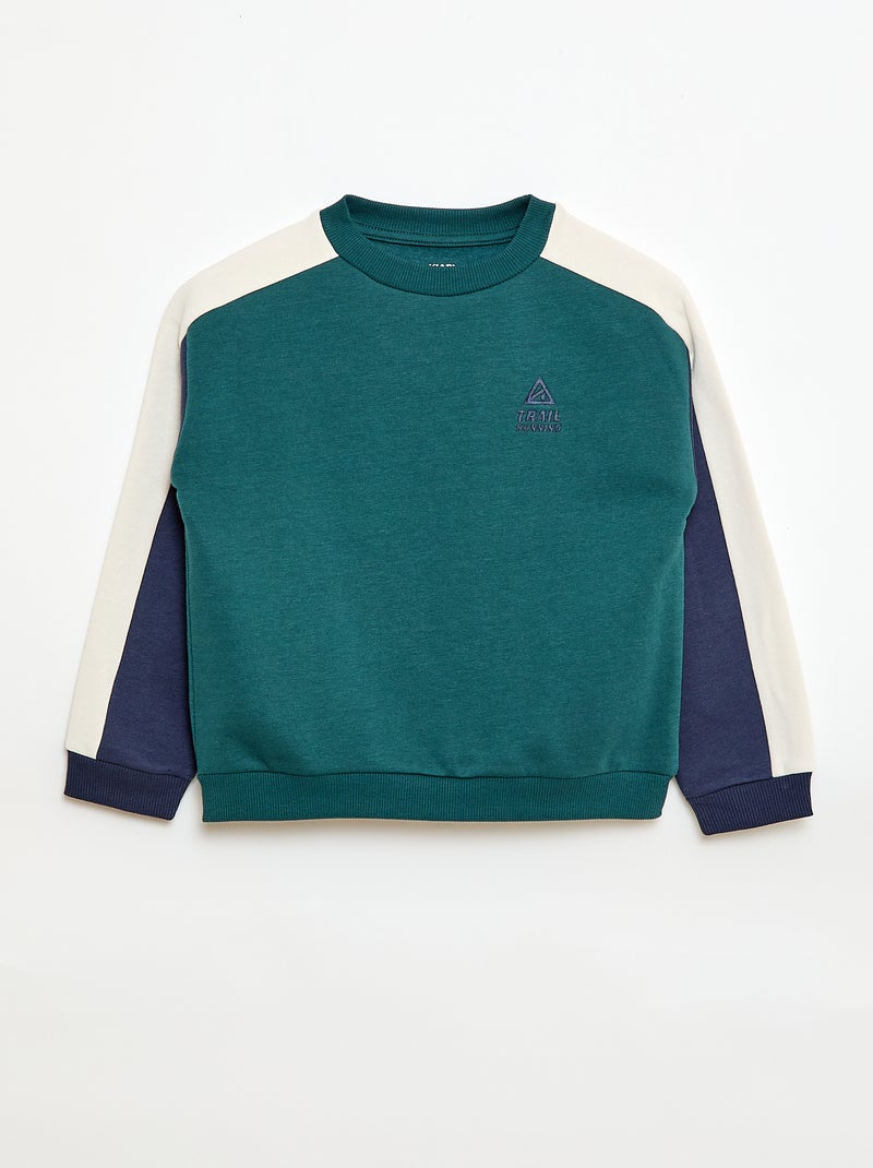 Sweat à col rond color block - Vert