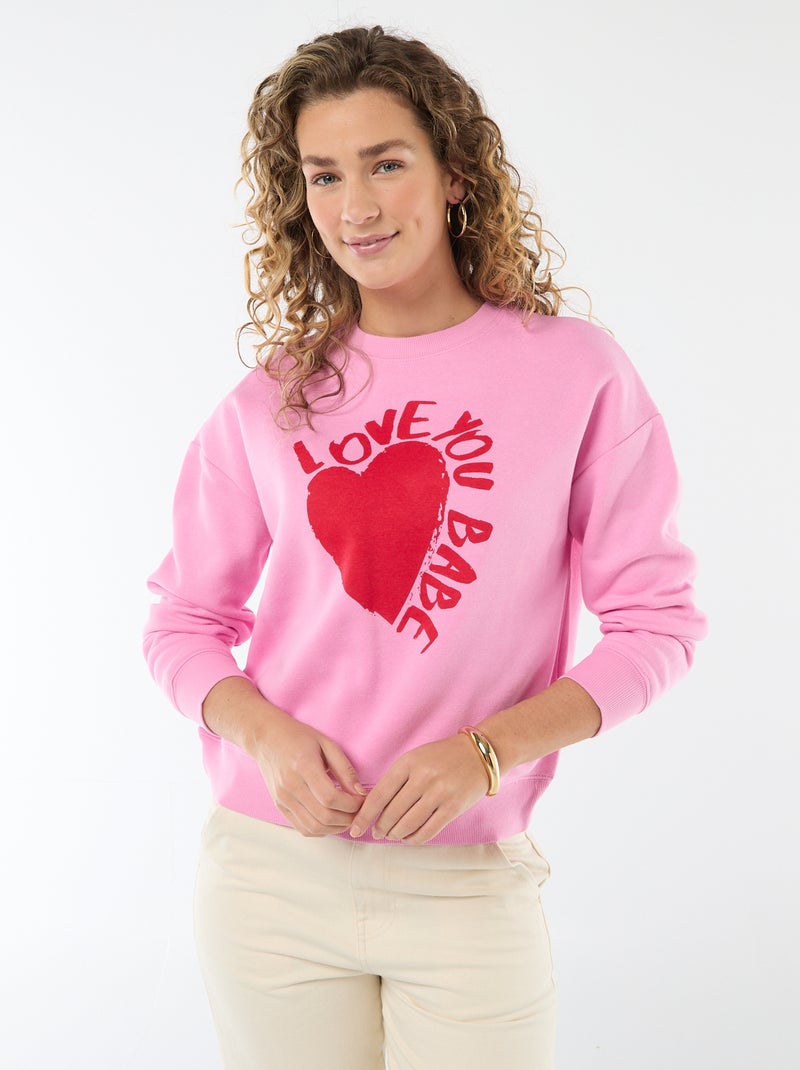Sweat en molleton à message - Rose