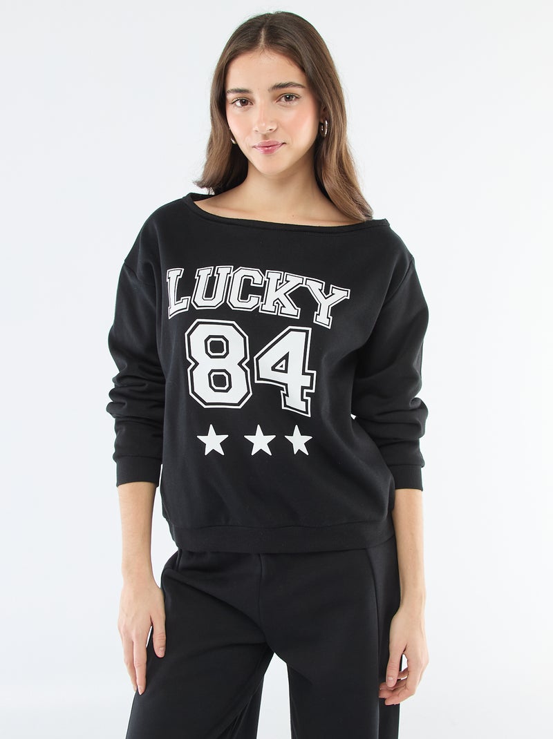 Sweat en molleton esprit sportif - Noir