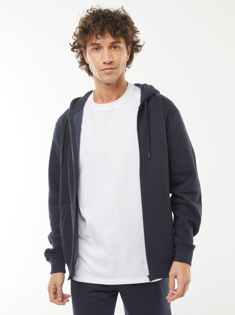 Sweat en molleton zippé à capuche - Bleu