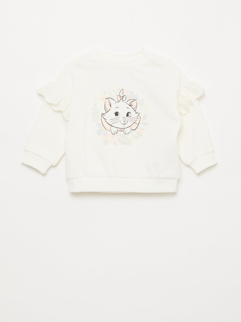 Sweat 'Marie' 'Disney' à manches longues avec volants brodés - Blanc