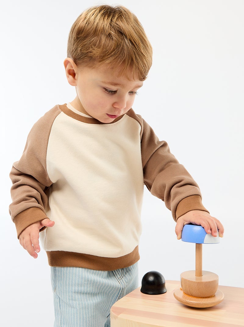Sweat-shirt bicolore en molleton non gratté - Beige