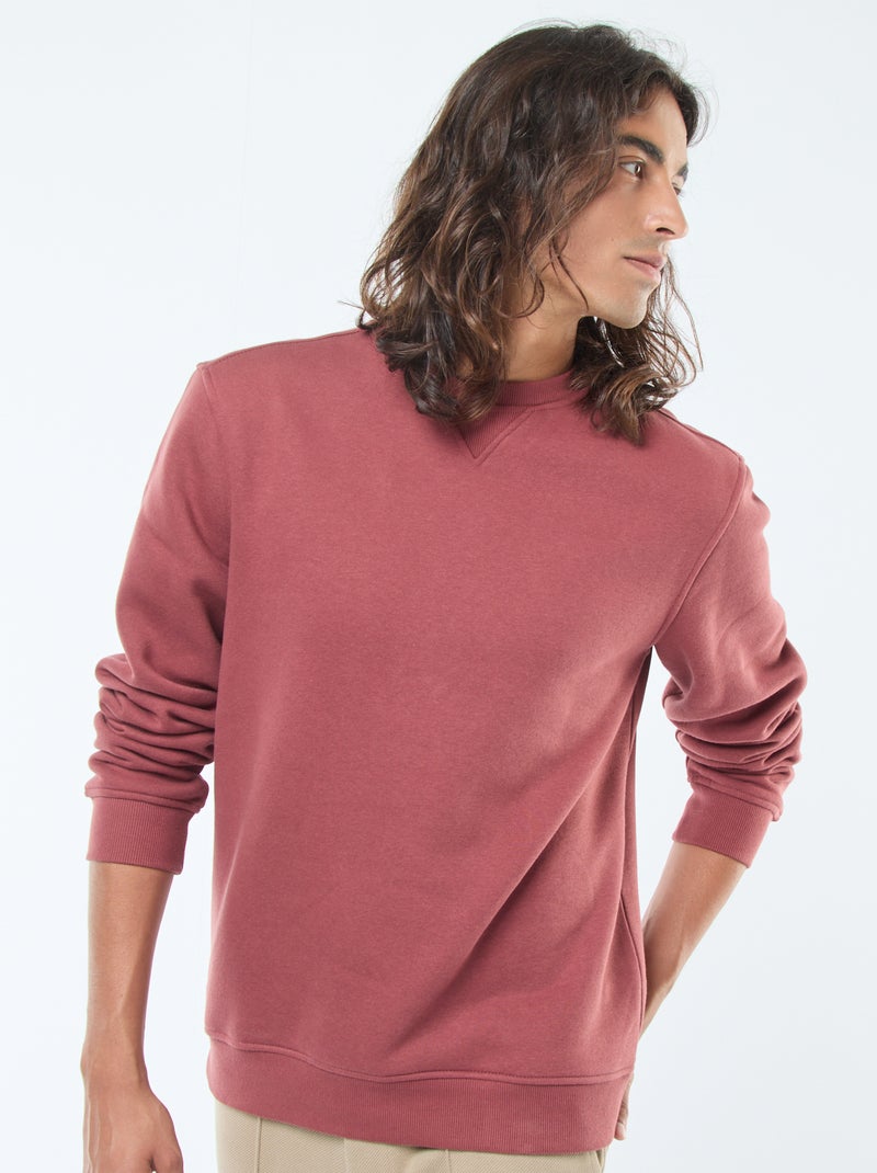 Sweat uni à col rond en molleton gratté - Rouge
