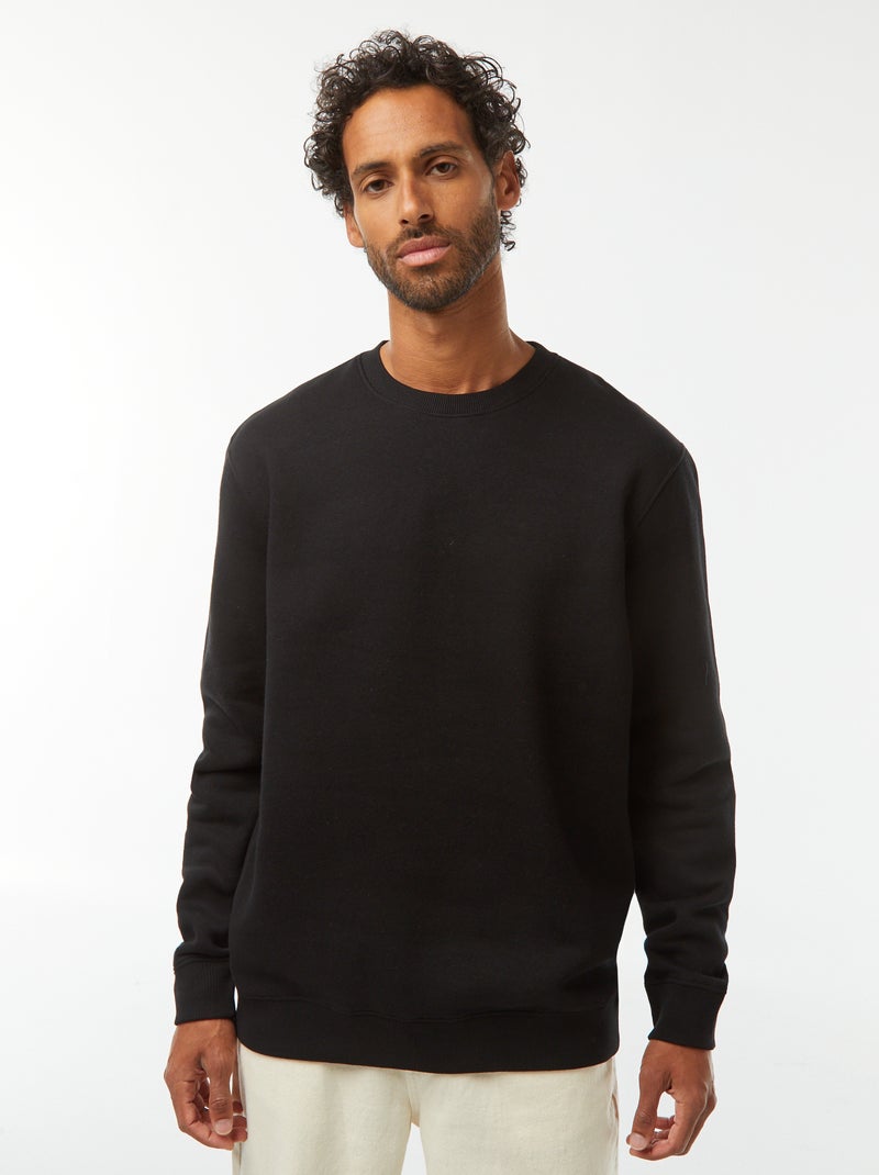Sweat uni en molleton gratté à col rond - Noir