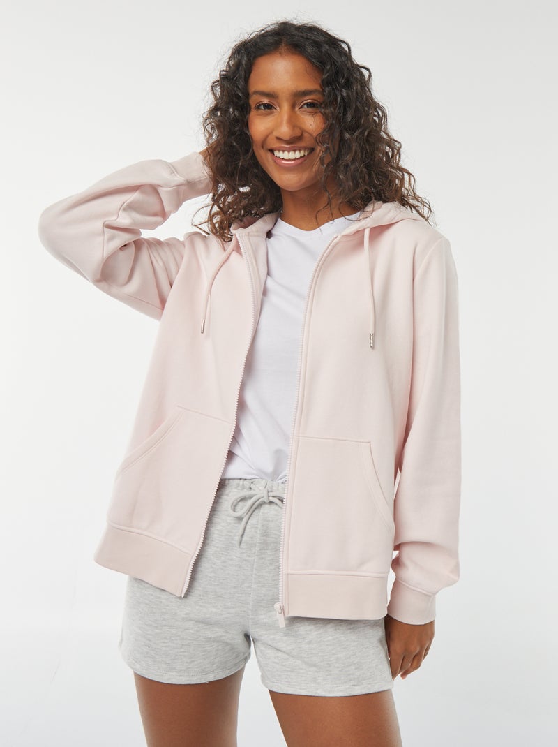 Sweat zippé à capuche basique - Rose