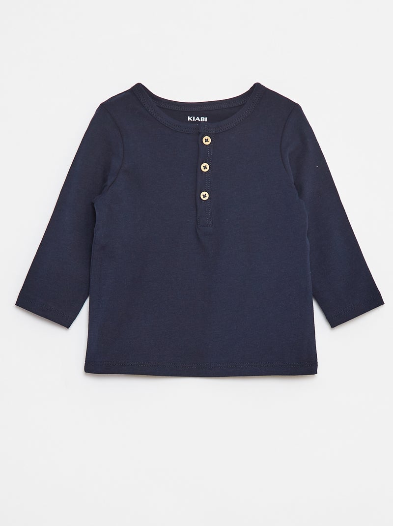 T-shirt à col tunisien - Bleu