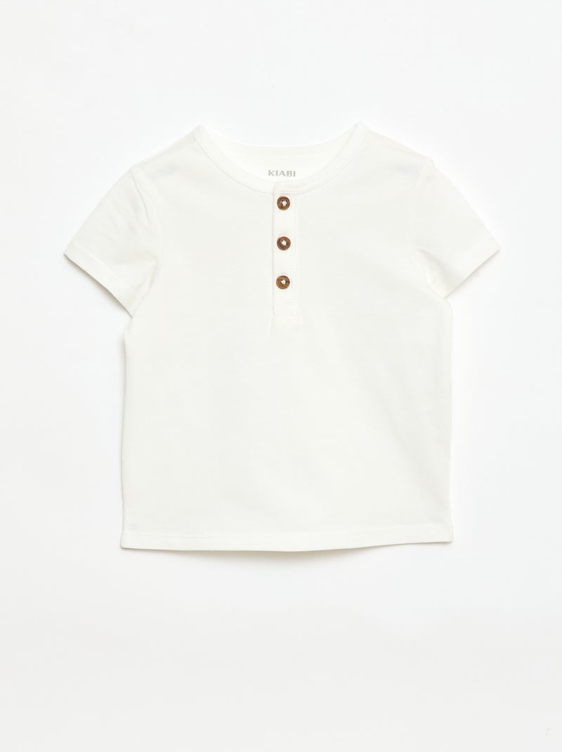 T-shirt à col tunisien boutonné - Blanc