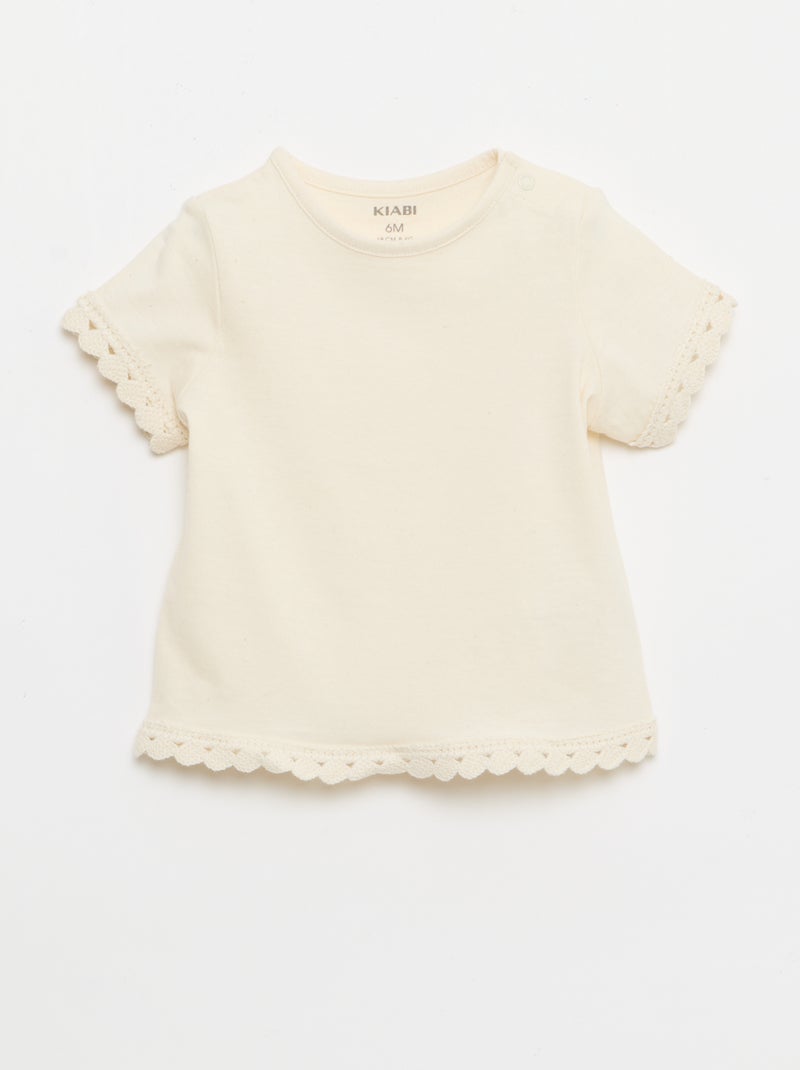 T-shirt à manches courtes avec détails au crochet - Blanc