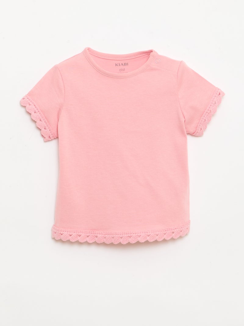 T-shirt à manches courtes avec détails au crochet - Rose