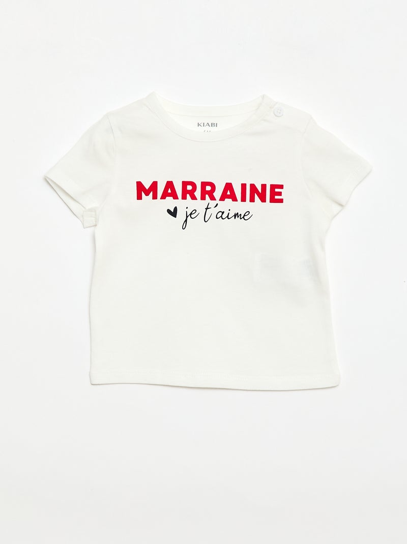 T-shirt à manches courtes avec imprimé 'Marraine' - Blanc