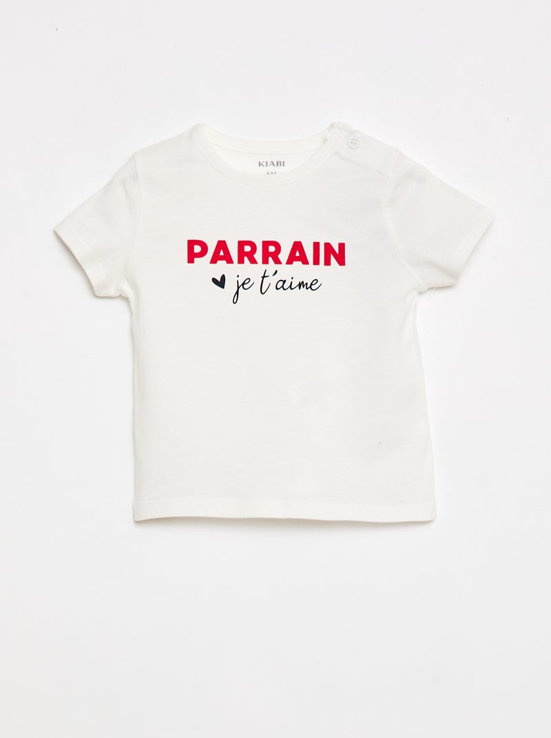 T-shirt à manches courtes avec imprimé 'Parrain' - Blanc