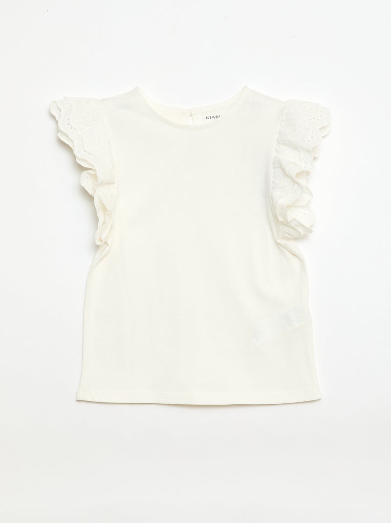 T-shirt à manches courtes en broderies anglaises - Blanc