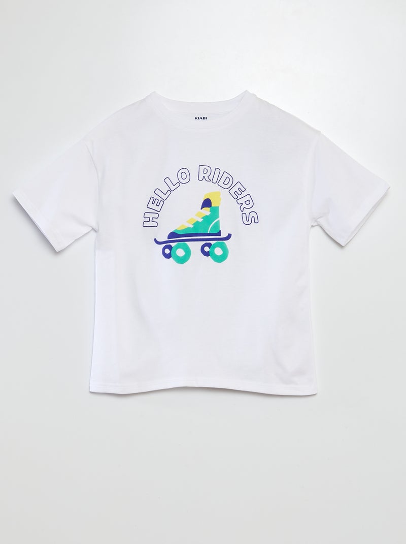 T-shirt à manches courtes et col rond avec imprimé - BLANC