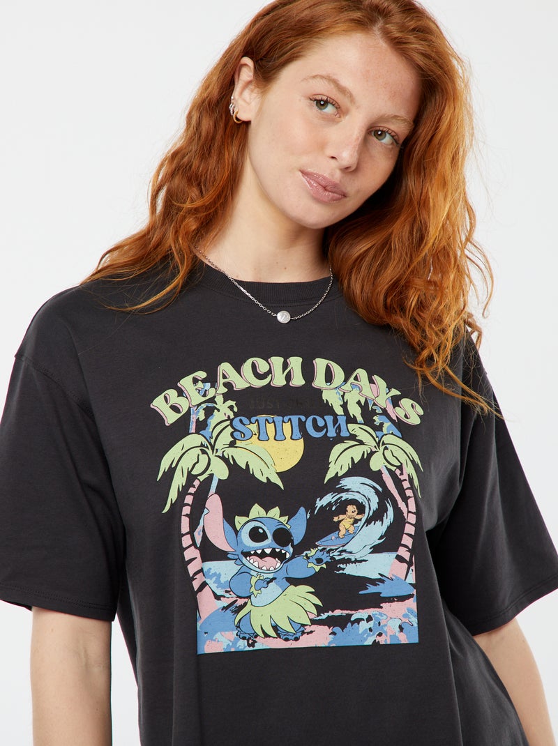T-shirt à manches courtes et col rond 'Disney' - Noir