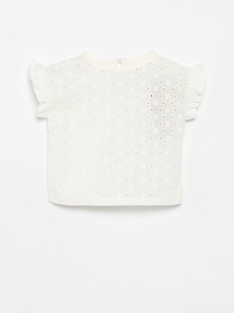 T-shirt à manches courtes volantées et broderies anglaises - Blanc