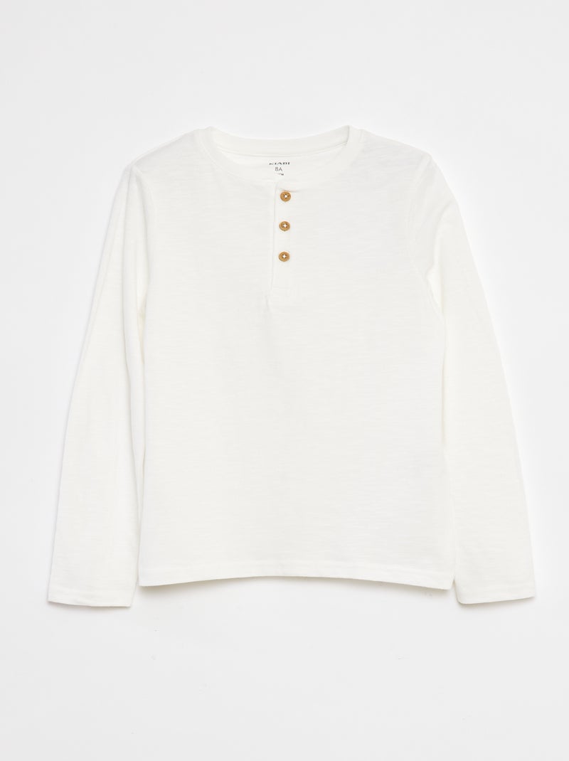 T-shirt à manches longues et col tunisien - Blanc