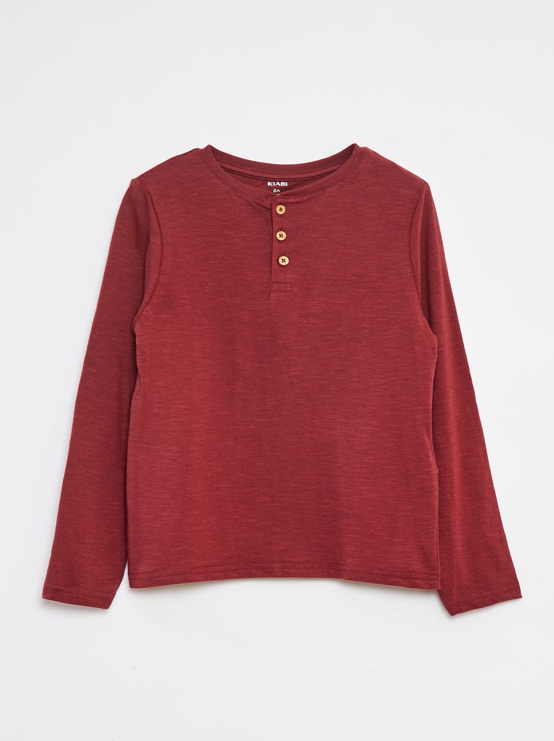 T-shirt à manches longues et col tunisien - Marron